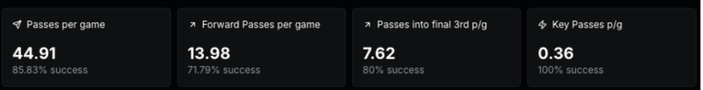 Set pieces have become a trend recently in football and Sunderland have become no less. One of their tools is the use of the long throw, perfected by Mukiele, averaging 1.52 headed shots per 90. His long throws have struck fear into many teams this season and have become a genuine threat every time he winds it up. The ability to launch the ball into the box from near enough anywhere in the opposition half has become very useful. Another key threat is the heigh and presence of Dan Ballard in the box; he has made 8 first contacts already this season, the most by any player across the league.