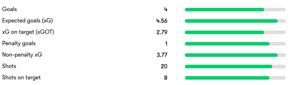 Even with, due to his standards, a slow scoring start with his new club he is still the club’s top scorer. With the likes of Havertz and Gabriel Jesus sidelined with serious injuries the focal point of the team has been weighted heavily of Gyokeres.